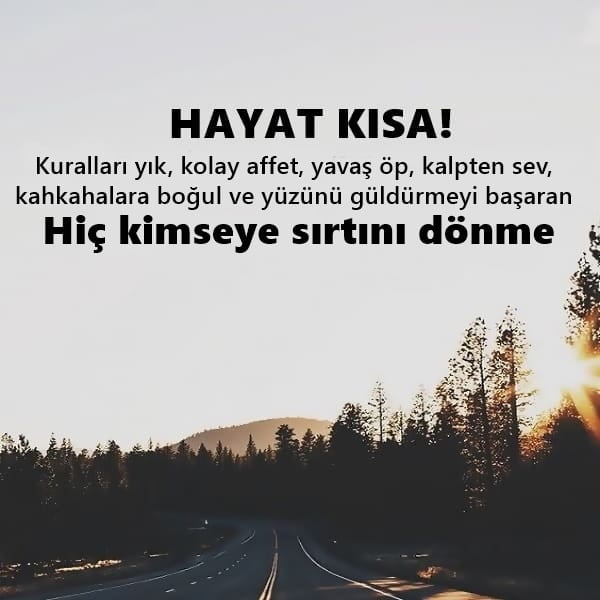 Hayat kısa. Kuralları yık, kolay affet, yavaşça öp, kalpten sev ve yüzünü güldürmeyi başaran hiç bir şeye sırtını dönme.